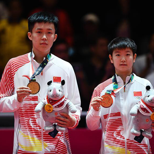 当日,在第18届亚运会乒乓球混合双打决赛中,中国组合王楚钦/孙颖莎以4比2战胜中国组合林高远/王曼昱,获得冠军。