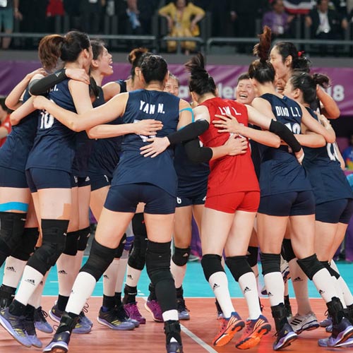 29日,在第18届亚运会女子排球四分之一决赛中,中国队以3比0战胜菲律宾队。