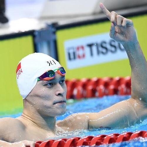 8月21日,中国选手孙杨在比赛后庆祝。 当日,在第18届亚运会男子400米自由泳决赛中,中国选手孙杨以3分42秒92的成绩夺冠。