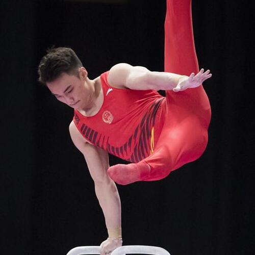 8月22日,中国队孙炜在比赛中。 当日,在第18届亚运会体操男子团体决赛中,中国队以260.950分的总成绩获得冠军,日本队获得亚军,韩国队获得季军。
