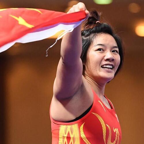 女子自由式摔跤76公斤级:中国选手周倩夺冠