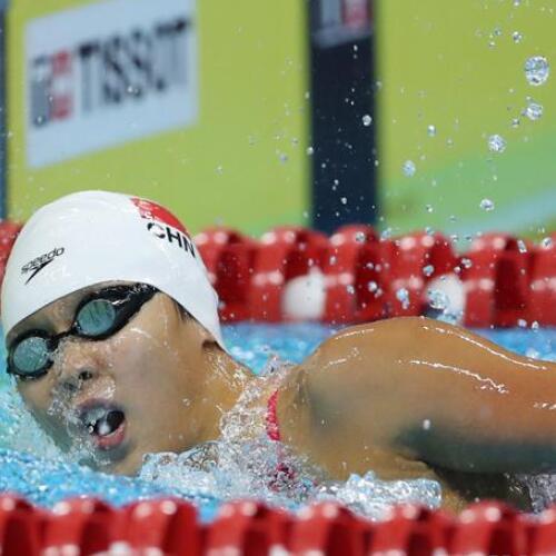 8月21日,中国选手杨浚瑄在比赛触壁。 当日,在第18届亚运会女子4X200米自由泳决赛中,中国队7分48秒61的成绩夺冠。