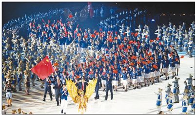 开幕式现场中国代表团入场。新华社记者 丁 汀摄