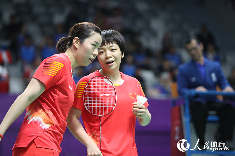 第二个出场的是中国队的一双陈清晨/贾一凡,她们的对手是泰国组合基地塔拉库尔/拉温达。双方第一局便打得很胶着,最终依靠关键分的出色发挥,中国组合以22-20先下一城。第二局比赛,中国组合出现过多失误,泰国组合以21-16扳回一局。关键的决胜局,陈清晨/贾一凡进入状态很快,开局便建立了优势,并最终以21-14赢下决胜局,帮助中国队取得2-0的领先。