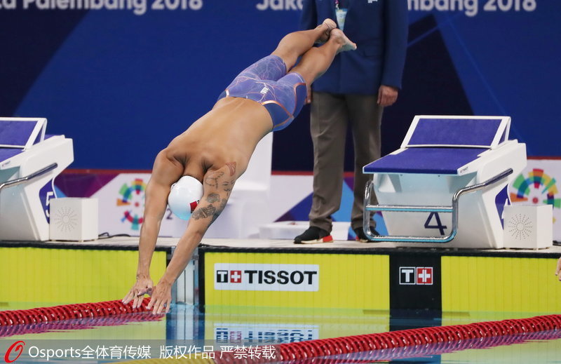 雅加达亚运会男子50米自由泳 余贺新获得金牌