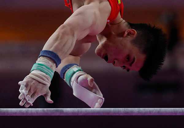 8月22日,中国队选手林超攀在比赛中。 当日,在印度尼西亚雅加达举行的第18届亚运会体操男子团体决赛中,中国队获得冠军,日本队获得亚军,韩国队获得季军。 新华社记者王丽莉摄
