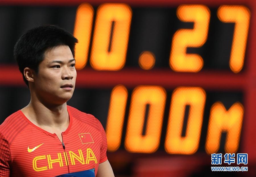 8月25日,中国选手苏炳添在比赛后。 当日,在第18届亚运会田径男子100米预赛中,中国选手苏炳添以10秒27的成绩晋级。 新华社记者岳月伟摄