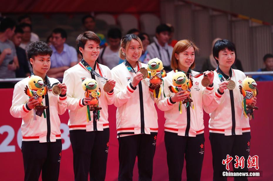 当地时间8月28日,雅加达亚运会乒乓球女团比赛中,中国香港队获得季军。 中新社记者 刘关关 摄
