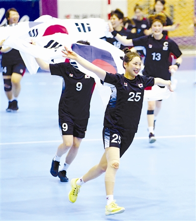 8月30日,在女子手球决赛中,韩国队以29比23战胜中国队,获得冠军。新华社记者 王毓国 摄