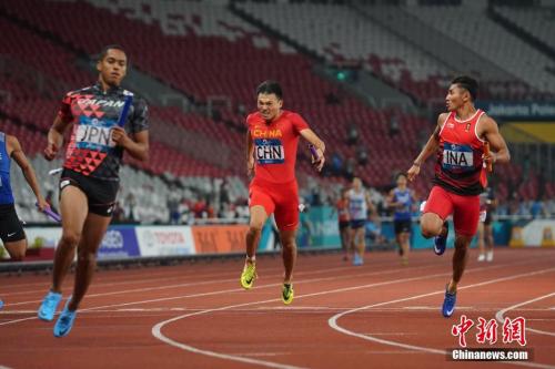 雅加达亚运会田径男子4x100米接力决赛,中国队以38秒89的成绩获得第三名。日本队获得冠军,印尼队获得银牌。中新社记者 杨华峰 摄