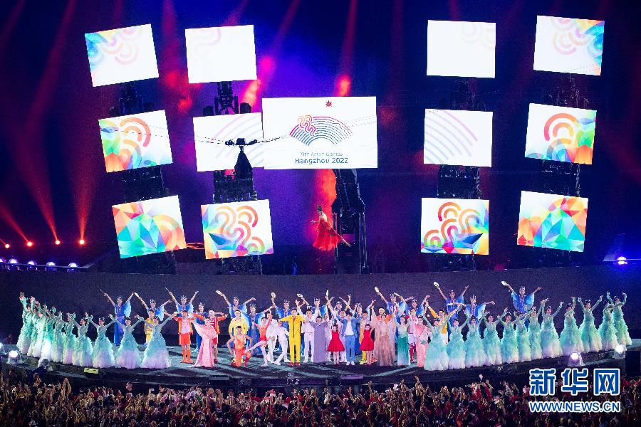 9月2日,第18届亚运会闭幕式在印度尼西亚雅加达举行。 这是闭幕式上的“杭州时间”文艺演出。 新华社记者张金加摄