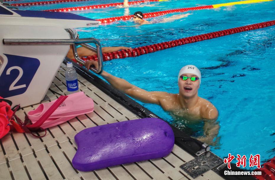 孙杨进行赛前训练。 中新社记者 李霈韵 摄