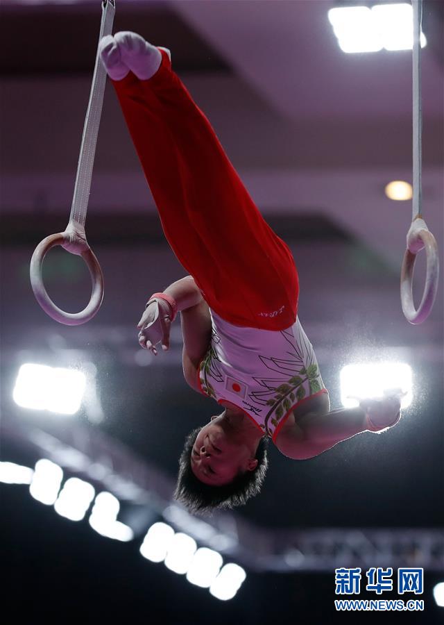 ↑8月20日,日本选手野野村笙吾在在吊环比赛中。 当日,在印度尼西亚雅加达举行的第18届亚运会体操男子团体资格赛中,日本队以256.650分的总成绩位列第二晋级决赛。 新华社记者王丽莉摄