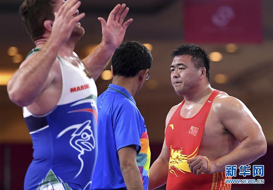 亚运会摔跤——男子自由式摔跤125公斤级决赛:中国选手邓志伟获得亚军