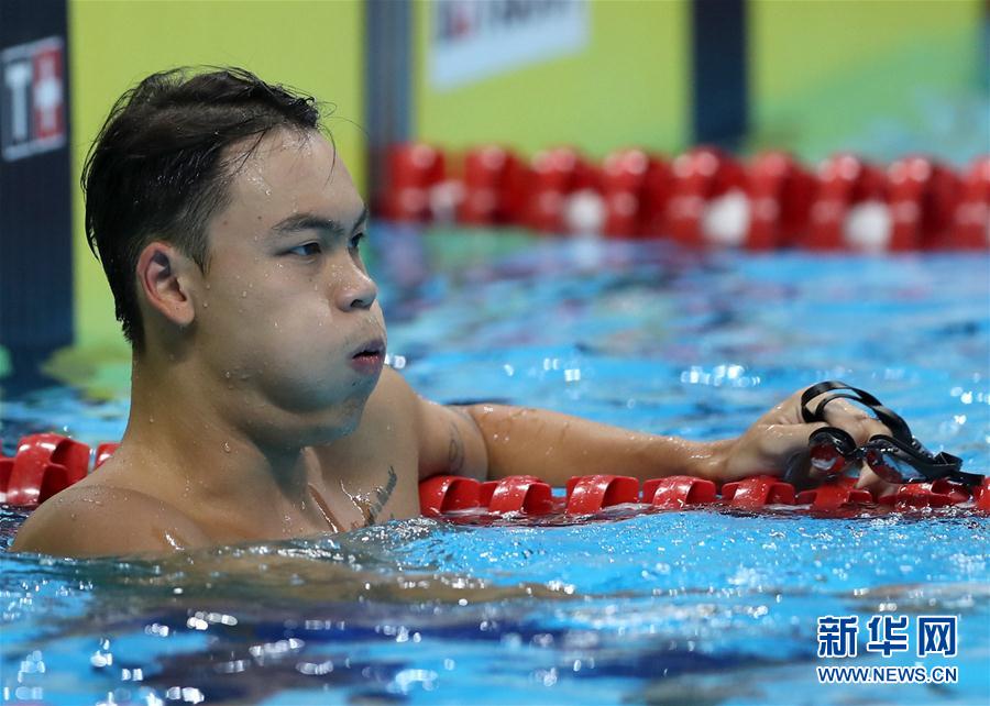 8月21日,中国选手余贺新在比赛后。 当日,在第18届亚运会男子50米自由泳决赛中,中国选手余贺新以22秒11的成绩夺冠。 新华社记者费茂华摄