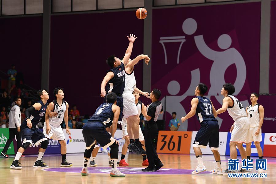 8月22日,两队球员在比赛中。当日,在第18届亚运会男篮小组赛中,日本队迎战中国香港队。由于四名队员被遣返回国,日本队以八名队员出战。新华社记者潘昱龙摄