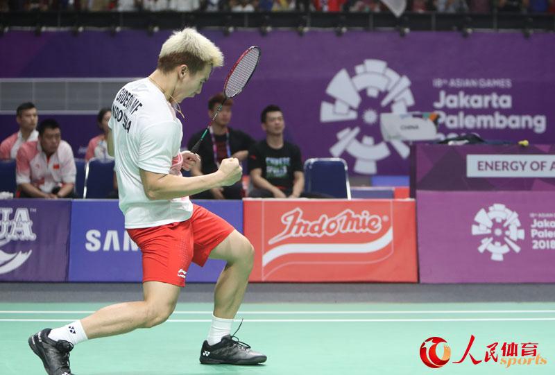 人民网雅加达8月23日电(记者 赵欣悦)当地时间8月22日晚18时,2018亚运会羽毛球项目展开男团决赛的争夺,由中国队对阵东道主印尼队。结果,经过近5个小时的激战,中国队凭借一单、二单和二双的三场胜利以3-1击败对手,重夺亚运会男团冠军,作为第三单打的林丹并未获得出场机会,因为不参加单打,所以林丹本次亚运会之旅已经结束。羽毛球项目将在今日开启各单项的争夺。(人民体育版权作品 严禁转载)