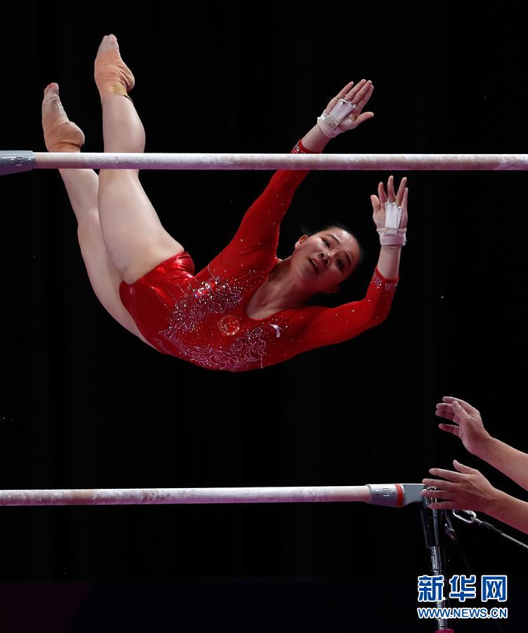8月23日,中国选手罗欢在女子高低杠决赛中。 当日,在印度尼西亚雅加达举行的第18届亚运会体操女子高低杠决赛中,中国选手刘婷婷获得金牌,中国选手罗欢获得银牌,朝鲜选手全蔷薇获得铜牌。 新华社记者王丽莉摄