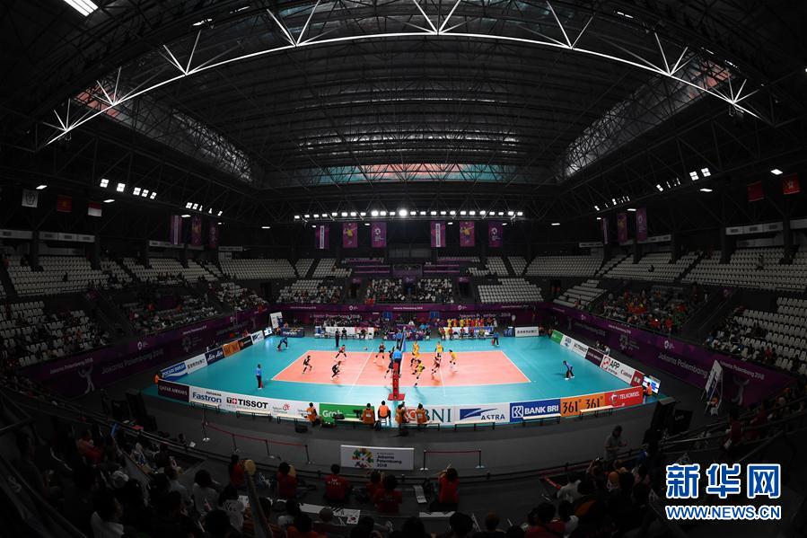8月23日,在第18届亚运会女子排球B组小组赛中,中国队3-0战胜韩国队。这是比赛现场(8月23日摄)。 新华社记者黄宗治摄