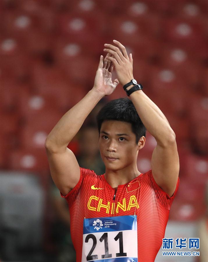 8月25日,中国选手苏炳添在比赛前。 当日,在第18届亚运会田径男子100米预赛中,中国选手苏炳添以10秒27的成绩晋级。 新华社记者王丽莉摄