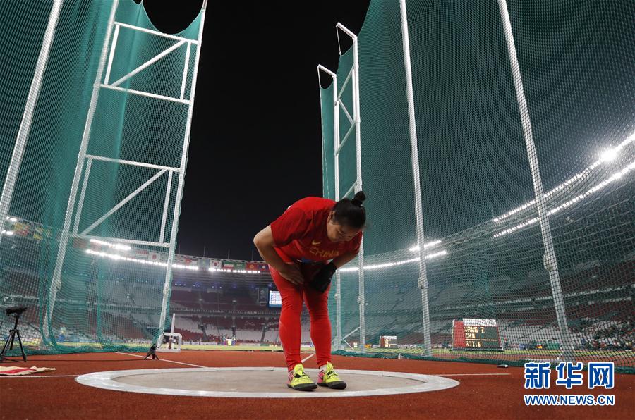 8月25日,中国选手王峥在比赛中。 当日,在第18届亚运会田径女子链球决赛中,中国选手王峥以70米86的成绩获得亚军。 新华社记者王丽莉摄
