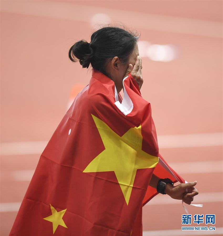 8月25日,中国选手张德顺在女子10000米比赛结束后庆祝。 当日,在第18届亚运会女子10000米比赛中,中国选手张德顺以32分12秒78的成绩获得该项目铜牌。 新华社记者岳月伟摄