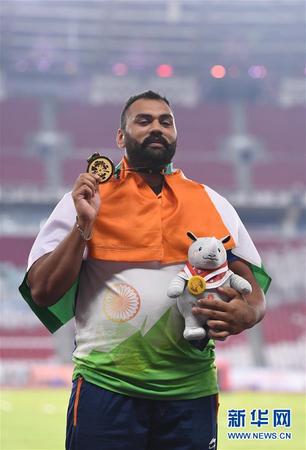 8月25日,印度选手图尔在颁奖仪式上。 新华社记者潘昱龙摄