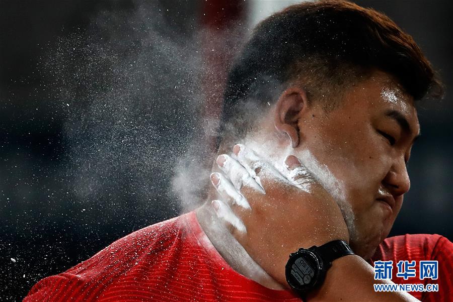 8月25日,中国选手李竣在男子铅球决赛中。 当日,在印度尼西亚雅加达举行的第18届亚运会田径男子铅球决赛中,中国选手李竣获得第六名。 新华社记者王丽莉摄