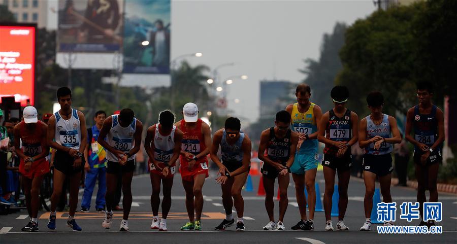 8月29日,选手们准备出发。 当日,在印度尼西亚雅加达举行的第18届亚运会田径男子20公里竞走比赛中,中国选手王凯华与金向前分别以1小时22分04秒和1小时25分41秒的成绩获得冠军和季军。 新华社记者王丽莉摄