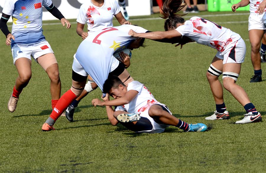 亚运会女子橄榄球预赛 中国队大胜中国香港队