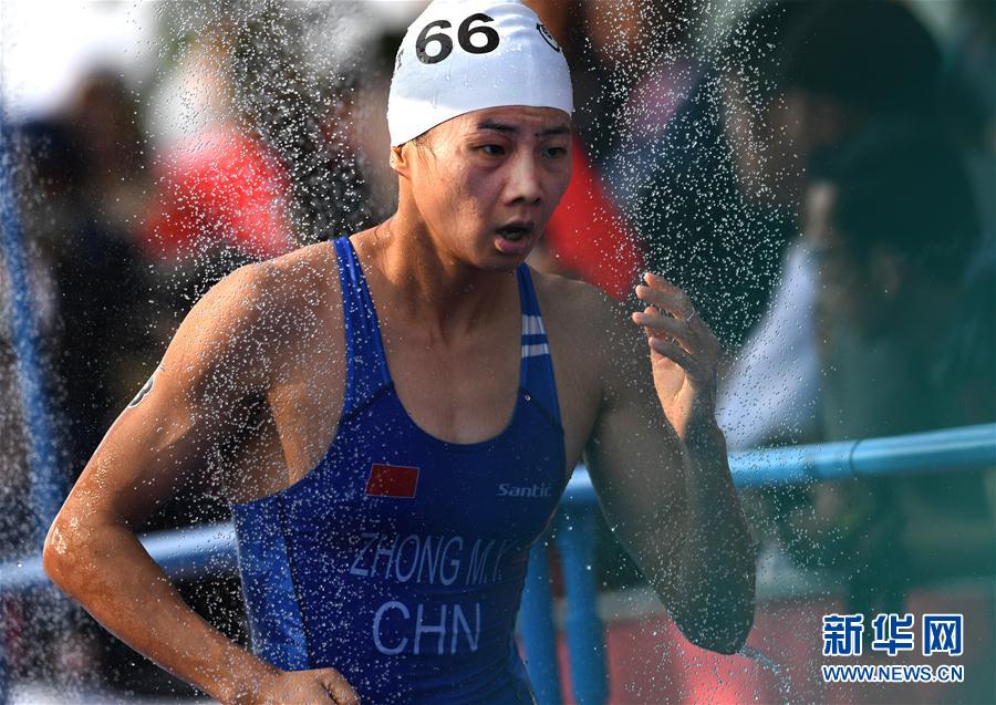 8月31日,中国队仲梦颖在铁人三项比赛中。 当日,在第18届亚运会女子铁人三项决赛中,中国选手仲梦颖获得亚军。新华社记者程敏摄