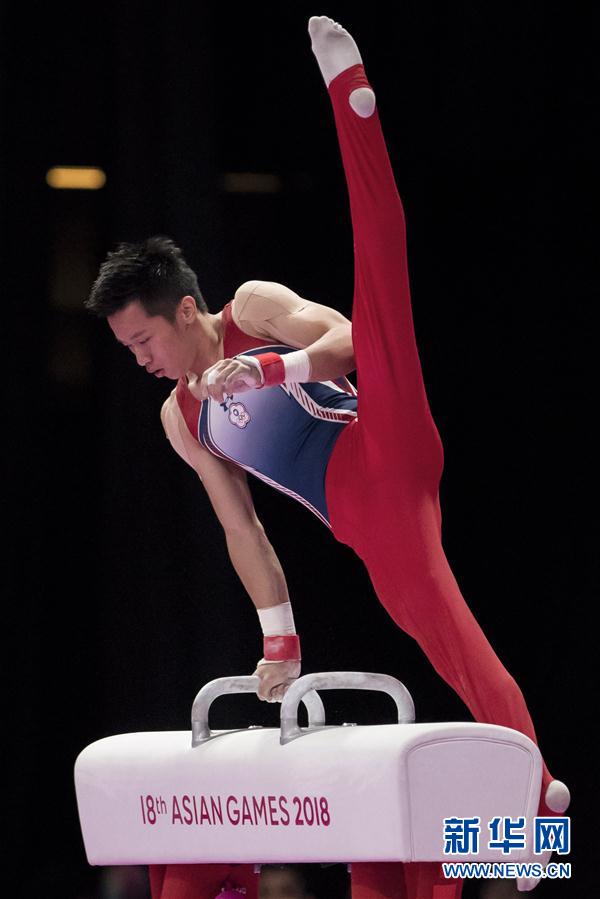 8月23日,中国台北选手李智凯在男子鞍马决赛中。 当日,在印度尼西亚雅加达举行的第18届亚运会体操男子鞍马决赛中,中国台北选手李智凯获得金牌。 新华社记者朱炜摄