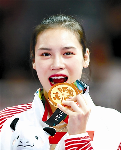 当日,在第18届亚运会蹦床女子个人决赛中,中国选手刘灵玲夺冠。