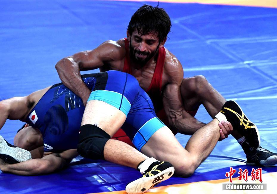印度选手bajrang夺得亚运会男子摔跤65公斤级别冠军。 中新社记者 王东明 摄