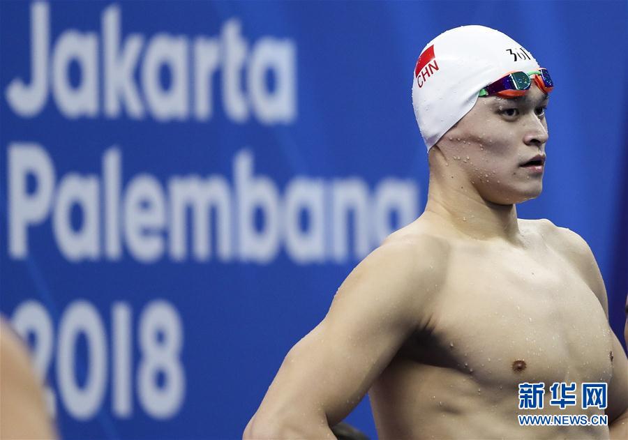 8月22日,中国队第三棒选手孙杨在比赛后。 当日,在第18届亚运会男子4X100米自由泳接力决赛中,中国队以3分13秒29的成绩获得亚军。 新华社记者费茂华摄