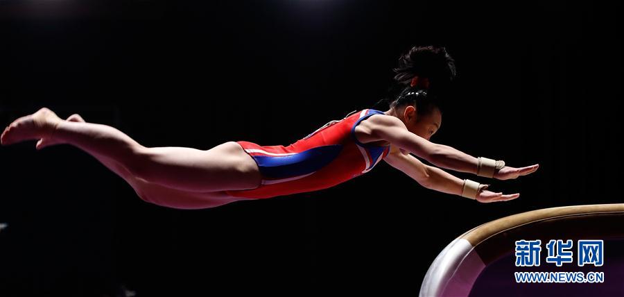 8月23日,朝鲜选手片礼永(音译)在比赛中。 当日,在印度尼西亚雅加达举行的第18届亚运会体操女子跳马决赛中,韩国选手余瑞婷(音译)获得冠军、乌兹别克斯坦选手丘索维金娜和朝鲜选手片礼永(音译)分获二、三名。 新华社记者王丽莉摄