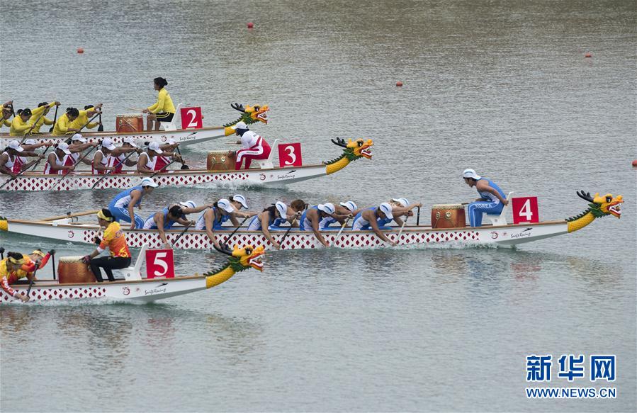 8月26日,朝韩联队(4号舟)在比赛中。 当日,在印度尼西亚巨港举行的第18届亚运会女子500米龙舟竞速赛中,朝韩联队获得冠军。 新华社发(维里摄)