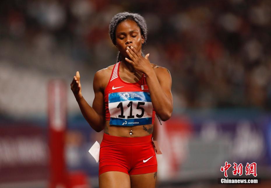 8月26日,雅加达亚运会田径比赛,女子400米决赛,巴林名将纳赛尔以50秒09的成绩夺得冠军,并且创造了新的赛会纪录。印度选手达斯以50秒79获得亚军,哈萨克斯坦选手排名第三。中国两位选手表现平平,黄瑰芬排在第五位,童曾欢名列第六。中新社记者 杜洋 摄