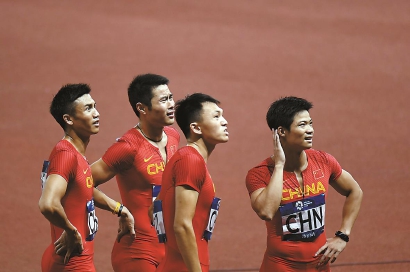中国队第一棒和第二棒交接时,已被日本拉开巨大的距离。由于前两棒落后太多,若非苏炳添和许周政拼命追赶,恐怕中国队这枚铜牌也将不保。“没想到比预赛的成绩还要差,确实挺失望的。”苏炳添说。
