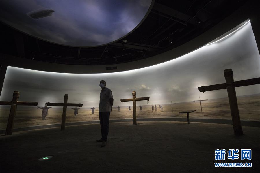8月13日,参观者在侵华日军第七三一部队罪证陈列馆内参观。新华社发(张涛 摄)