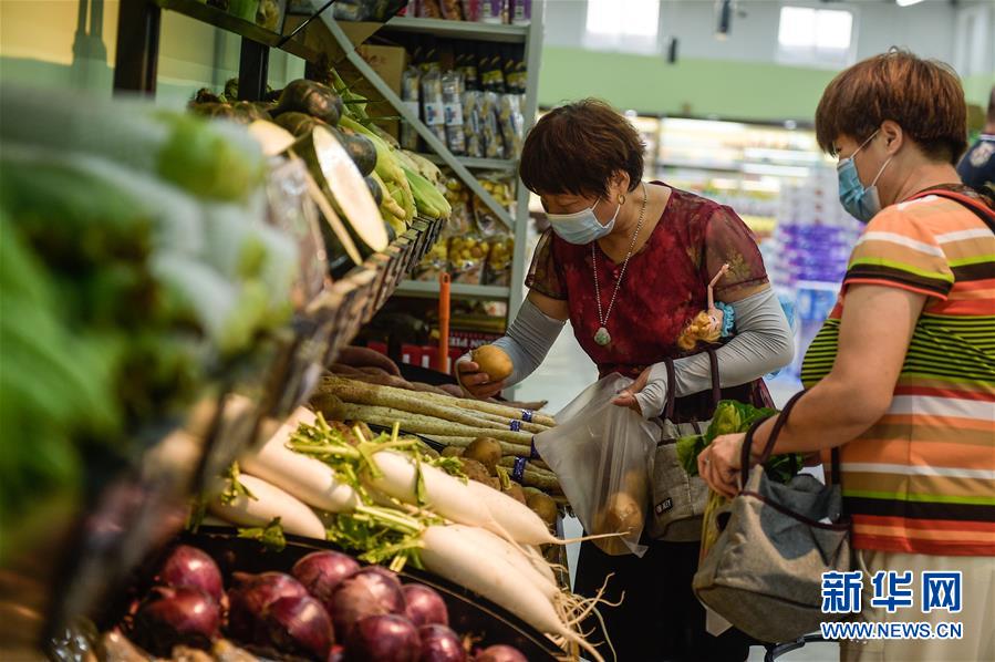 8月15日,市民在新发地农产品批发市场外新设置的便民超市购物。 新华社记者 彭子洋 摄