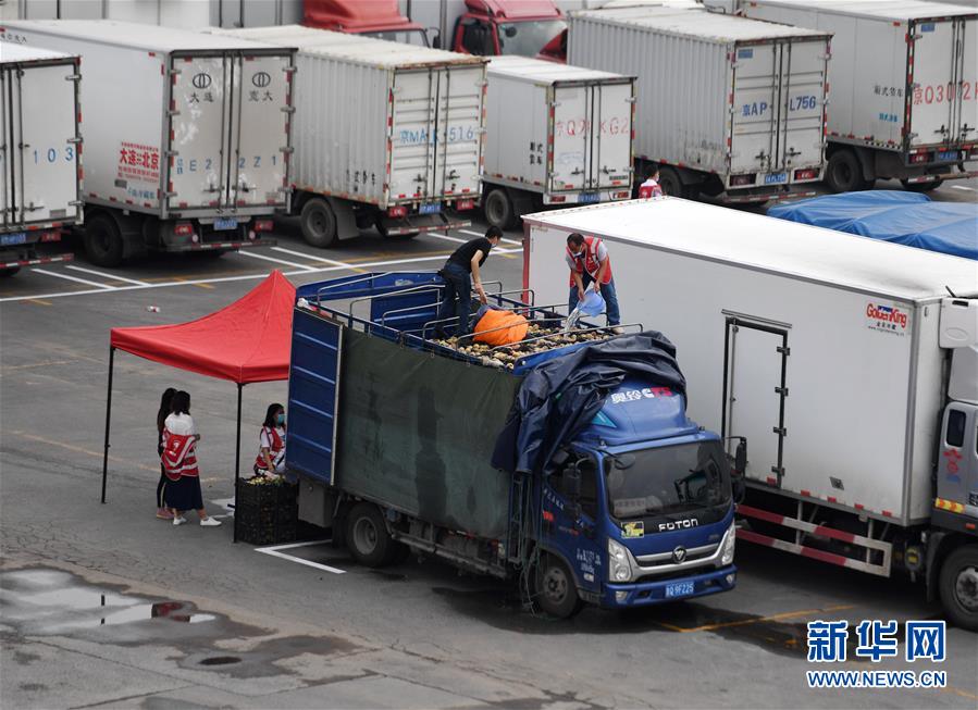 8月15日,商户在新发地农产品批发市场内做营业前的准备。 新华社记者 张晨霖 摄