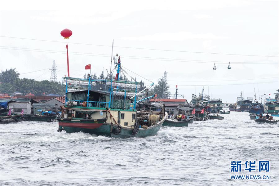 8月16日,海南省陵水黎族自治县新村镇的渔船陆续出海,开始捕捞作业。 当日,历时3个半月的南海伏季休渔结束,海南省陵水黎族自治县新村镇的渔船陆续起航出海,开始海上捕鱼作业。 新华社记者 张丽芸 摄