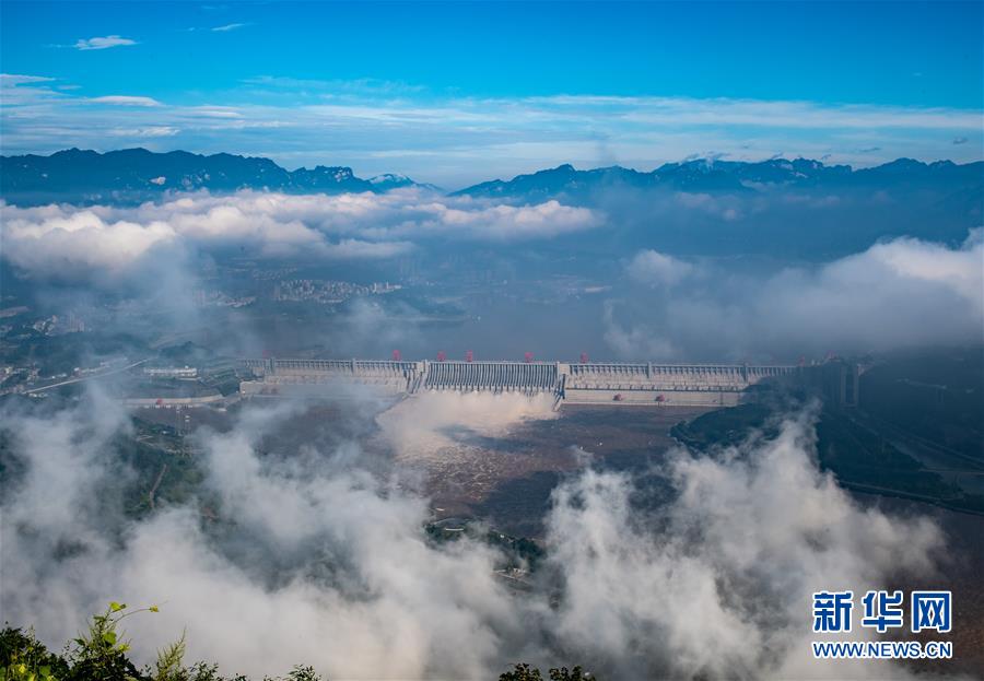 8月18日拍摄的长江三峡枢纽工程全景。 水利部长江水利委员会水文局当日11时升级发布长江上游支流岷江洪水红色预警,继续发布长江上游干流宜宾至寸滩江段、沱江、涪江洪水橙色预警,嘉陵江、三峡库区洪水黄色预警,长江中下游干流城陵矶江段、九江至南京江段、鄱阳湖区、洞庭湖区洪水蓝色预警。 新华社发(郑家裕 摄)