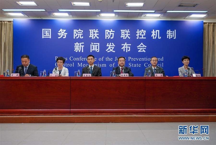 8月19日,国务院联防联控机制举行新闻发布会,请援鄂抗疫医疗队员代表、北京朝阳医院副院长童朝晖,公共卫生工作者代表、中国疾控中心流行病学首席专家吴尊友,基层医生代表、北京市丰台区方庄社区卫生服务中心主任吴浩,国家卫生健康委疾控局监察专员王斌和医政医管局监察专员郭燕红介绍秋冬季疫情防控,以及医疗卫生工作者在抗击新冠肺炎疫情中发挥的作用情况。 新华社发(郑亮 摄)