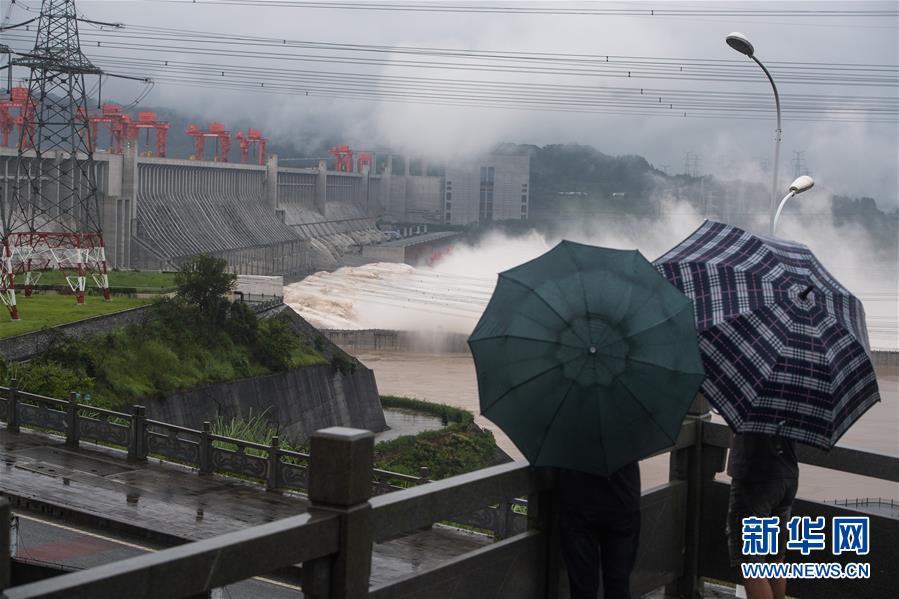 8月20日,市民在观看长江三峡水利枢纽工程开启泄洪深孔泄洪。 8月20日8时,“长江2020年第5号洪水”洪峰抵达三峡水利枢纽,入库流量高达75000立方米每秒,这是三峡水利枢纽自2003年建库以来遭遇的最大洪峰。 新华社记者 肖艺九 摄