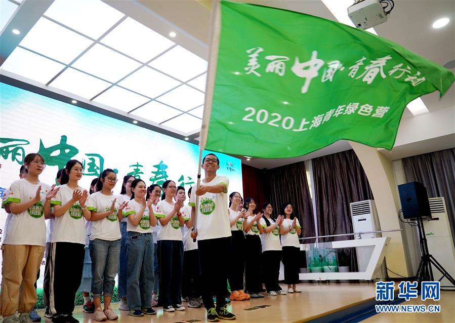 8月21日拍摄的“2020上海青年绿色营”授旗仪式。新华社记者 刘颖 摄