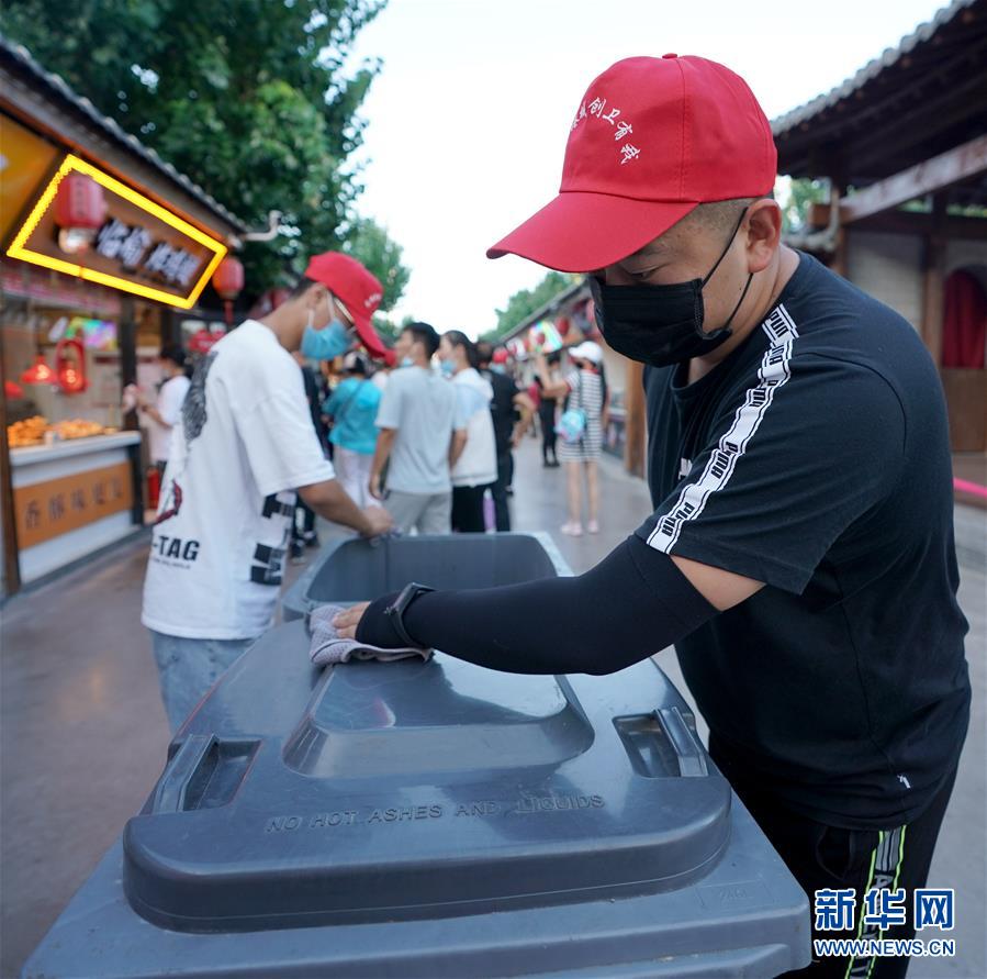 8月21日,秦皇岛市海港区的公司职工来到秦皇小巷美食街清理卫生。 今年5月起,河北省秦皇岛市开展“周末卫生日”活动,当地干部职工利用周五下午时间,通过清理垃圾、清除杂物等行动,改善环境卫生。 新华社记者 王毓国 摄