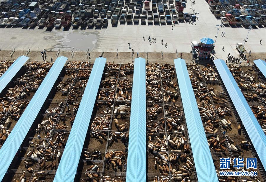 这是科尔沁左翼中旗舍伯吐镇成峰牲畜交易市场(8月19日摄,无人机照片) 。 新华社记者李欣摄