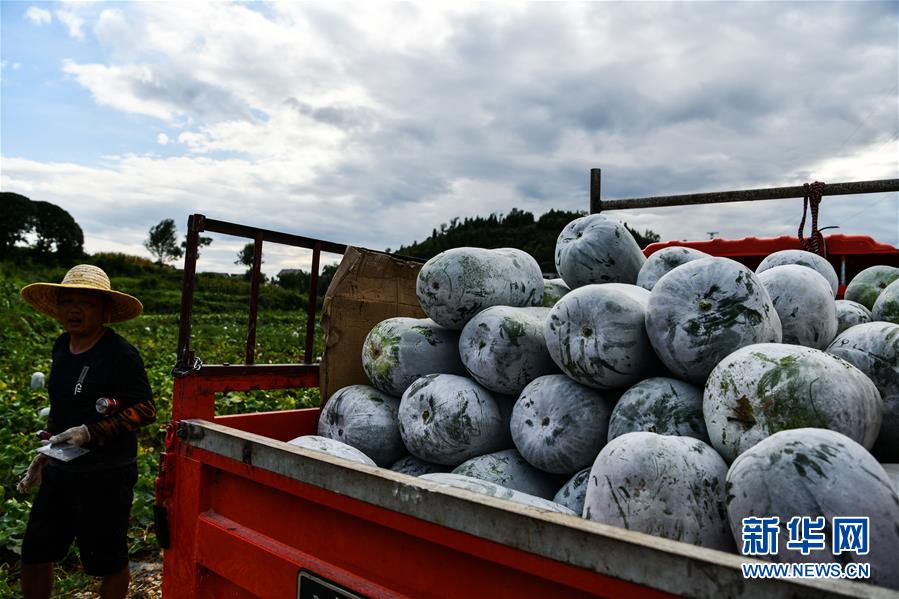 农民在贵州省思南县许家坝镇万塘村收获冬瓜(8月12日摄)。 新华社记者 杨文斌 摄